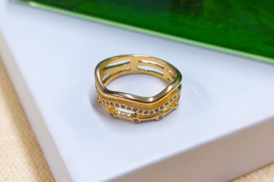ANEL BANHADO EM OURO, COM ZIRCÔNIAS GOTA, 16mm LARGURA