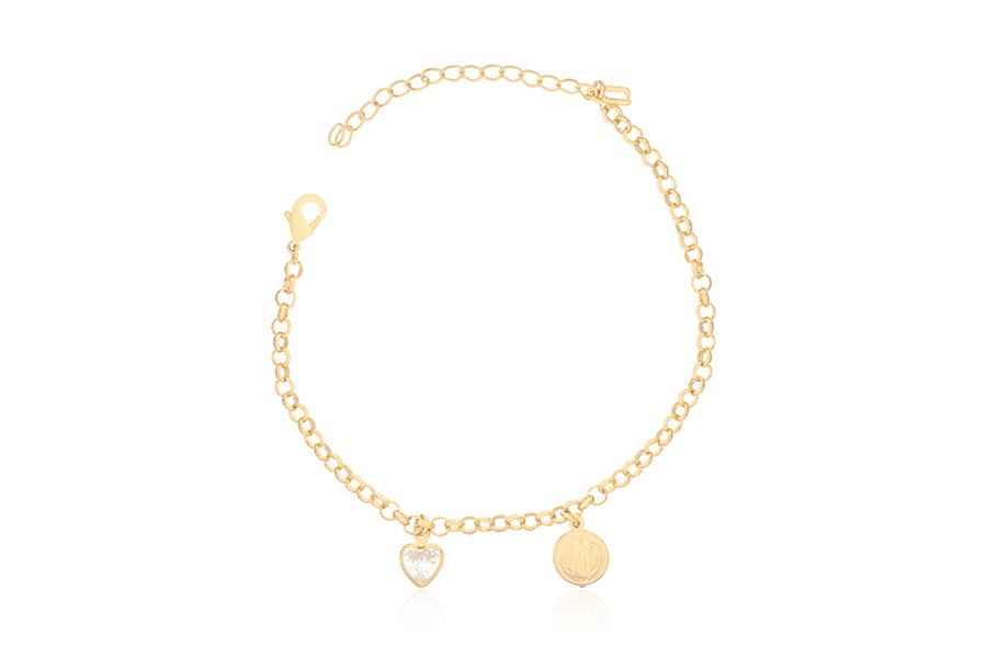 PULSEIRA INFANTIL BANHADA EM OURO, VENEZIANA LONGA 1,50mm ESPESSURA E CHAPINHA COM MENINO 24mm COMPRIMENTO