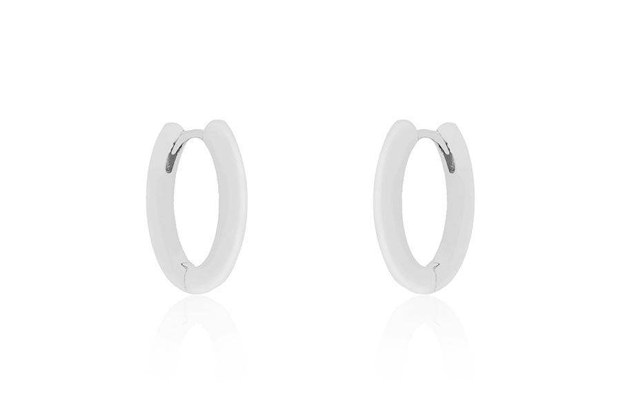 BRINCO EM PRATA, REDONDO 9mm DIÂMETRO, COM BANHO DE RÓDIO BRANCO, COLEÇÃO AURA