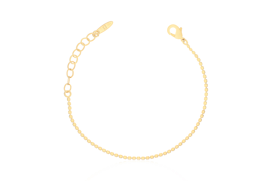 PULSEIRA INFANTIL BANHADA EM OURO, VENEZIANA LONGA 1,50mm ESPESSURA E CHAPINHA COM MENINO 24mm COMPRIMENTO