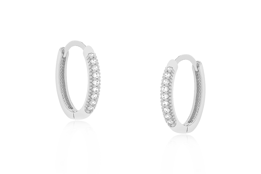 BRINCO EM PRATA, ARGOLINHA CLICK 13,50mm DIÂMETRO, ARO 1,80mm LARGURA, 1 FILEIRA DE ZIRCÔNIAS