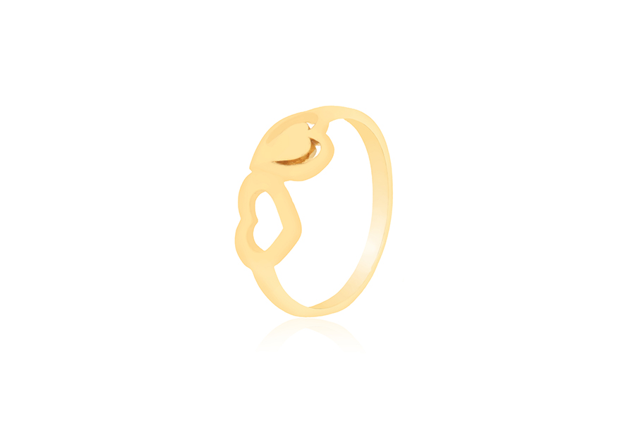 ANEL BANHADO EM OURO, CORAÇÃO 11,50mm LARGURA COM FORRO