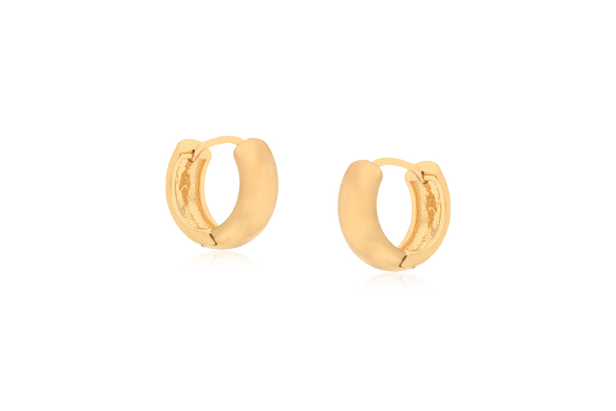 BRINCO BANHADO EM OURO, ARGOLINHA 15mm DIÂMETRO, 8,50mm LARGURA, LISO OU ACETINADO