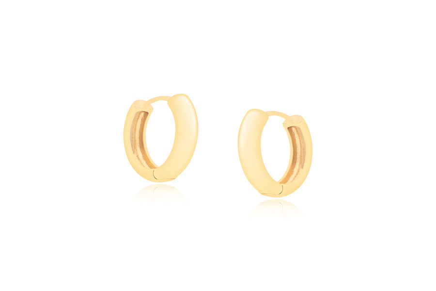 BRINCO BANHADO EM OURO, ARGOLINHA 15mm DIÂMETRO, 8,50mm LARGURA, LISO OU ACETINADO