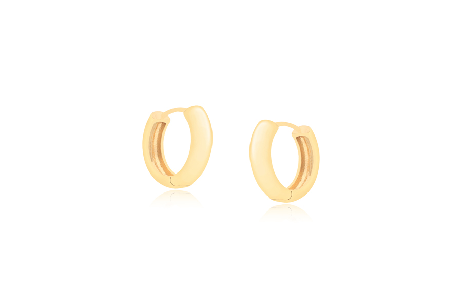 BRINCO BANHADO EM OURO, ARGOLINHA 15mm DIÂMETRO, 8,50mm LARGURA, LISO OU ACETINADO