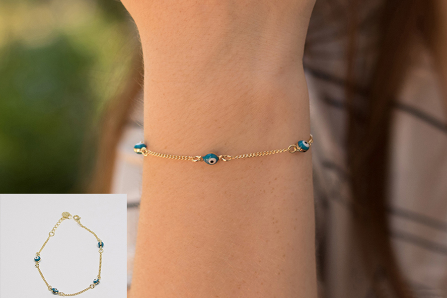 PULSEIRA INFANTIL BANHADA EM OURO, VENEZIANA LONGA 1,50mm ESPESSURA E CHAPINHA COM MENINO 24mm COMPRIMENTO