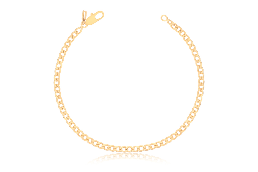PULSEIRA INFANTIL BANHADA EM OURO, VENEZIANA LONGA 1,50mm ESPESSURA E CHAPINHA COM MENINO 24mm COMPRIMENTO
