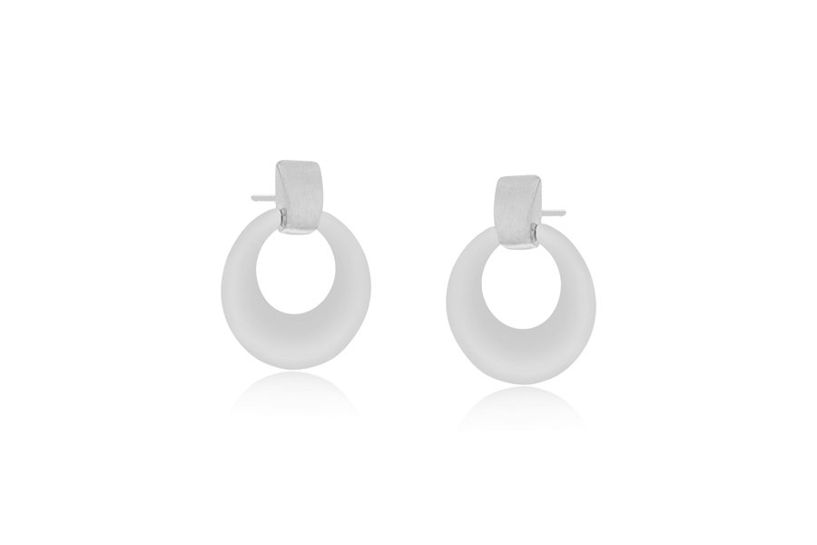 BRINCO EM PRATA, REDONDO 9mm DIÂMETRO, COM BANHO DE RÓDIO BRANCO, COLEÇÃO AURA
