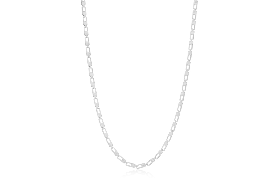 GARGANTILHA BANHADA EM RÓDIO BRANCO, ELO OVAL 0,90mm, 40cm COMPRIMENTO, EXTENSOR 5cm COMPRIMENTO E LAÇO 22mm LARGURA