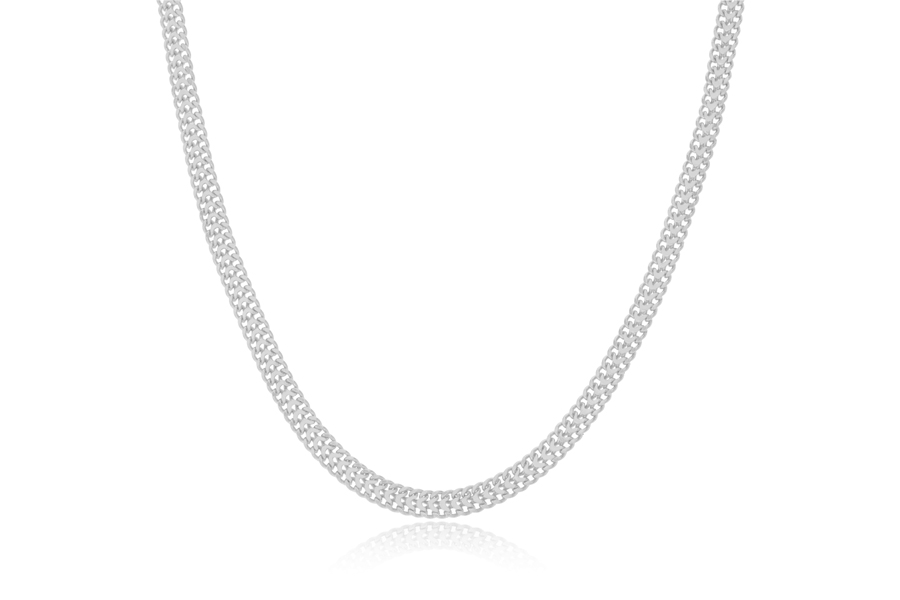 GARGANTILHA BANHADA EM RÓDIO BRANCO, ELO OVAL 0,90mm, 40cm COMPRIMENTO, EXTENSOR 5cm COMPRIMENTO E LAÇO 22mm LARGURA