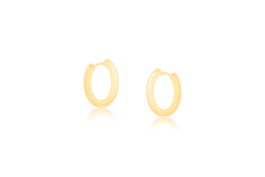 BRINCO BANHADO EM OURO, ARGOLINHA 15mm DIÂMETRO, 8,50mm LARGURA, LISO OU ACETINADO