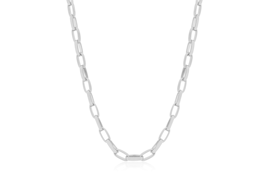 GARGANTILHA BANHADA EM RÓDIO BRANCO, ELO OVAL 0,90mm, 40cm COMPRIMENTO, EXTENSOR 5cm COMPRIMENTO E LAÇO 22mm LARGURA