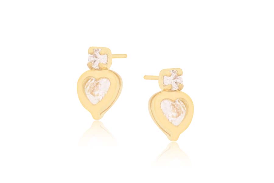 BRINCO BANHADO EM OURO, CORAÇÃO 3,50mm LARGURA COM TARRAXA BABY