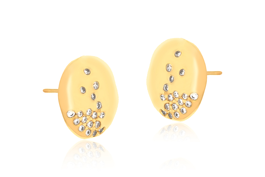 BRINCO BANHADO EM OURO, OVAL IRREGULAR 14mm COMPRIMENTO, LISO OU ACETINADO
