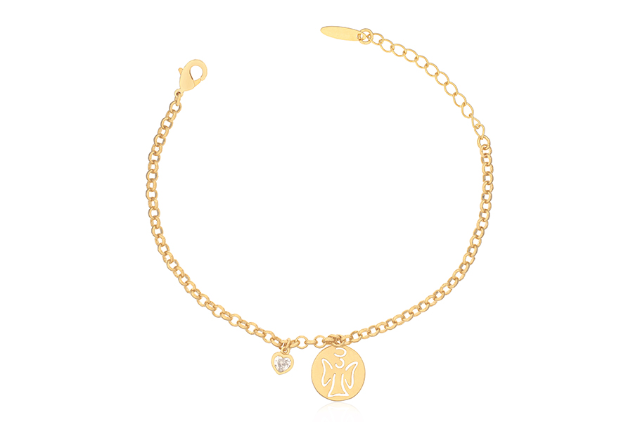 PULSEIRA INFANTIL BANHADA EM OURO, VENEZIANA LONGA 1,50mm ESPESSURA E CHAPINHA COM MENINO 24mm COMPRIMENTO
