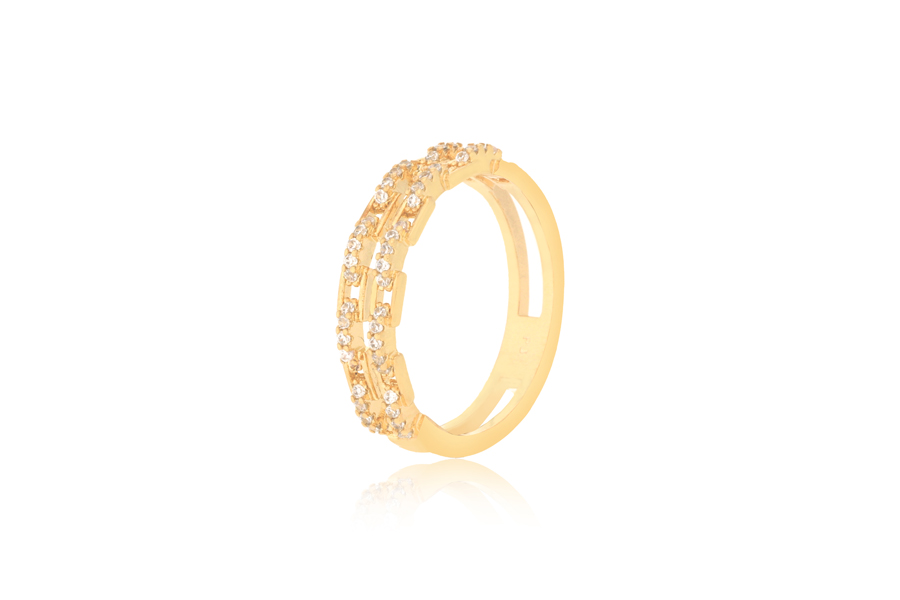 ANEL BANHADO EM OURO, COM ZIRCÔNIAS GOTA, 16mm LARGURA