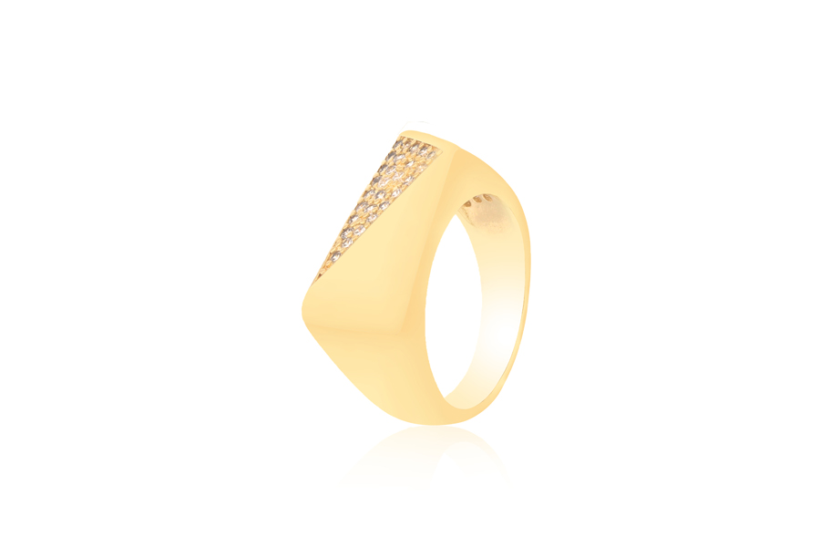 ANEL BANHADO EM OURO, COM ZIRCÔNIAS GOTA, 16mm LARGURA