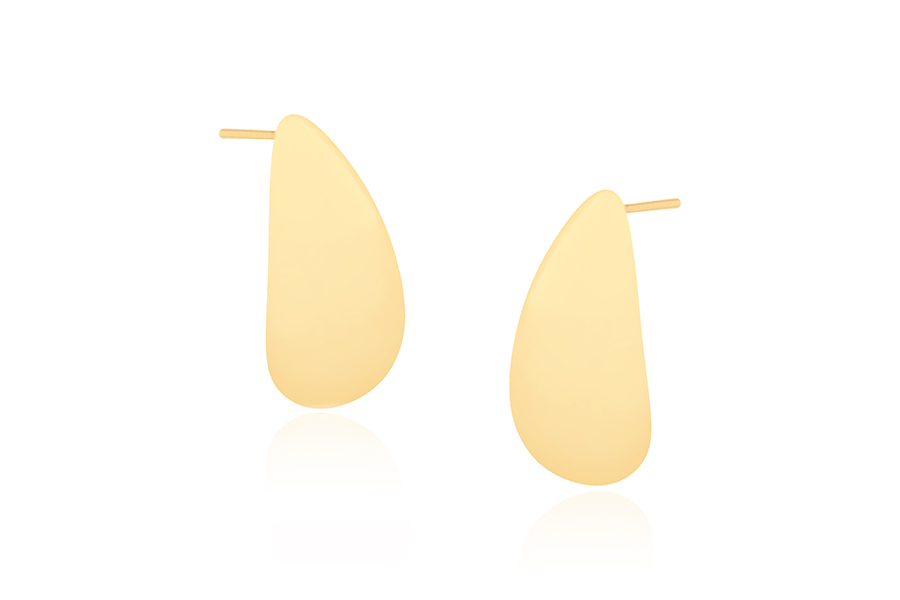 BRINCO BANHADO EM OURO, TRIÂNGULO 17X9mm, LISO OU ACETINADO