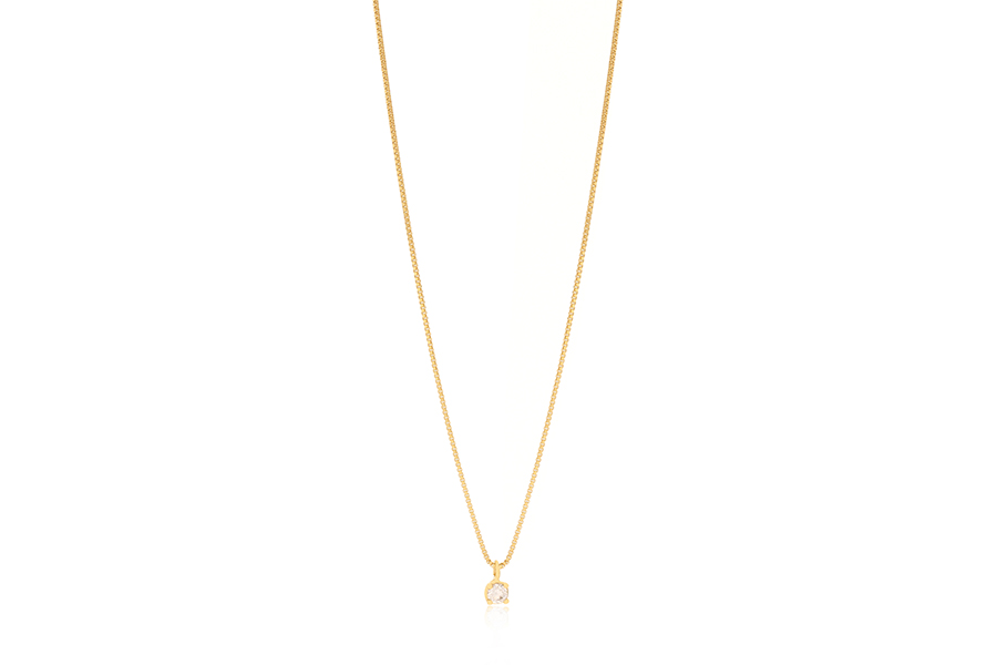 CHOKER BANHADA EM OURO, ELO 1,50mm, 37cm COMPRIMENTO, ZIRCÔNIA 4,50mm E MEDALHA CORAÇÃO 15mm DIÂMETRO