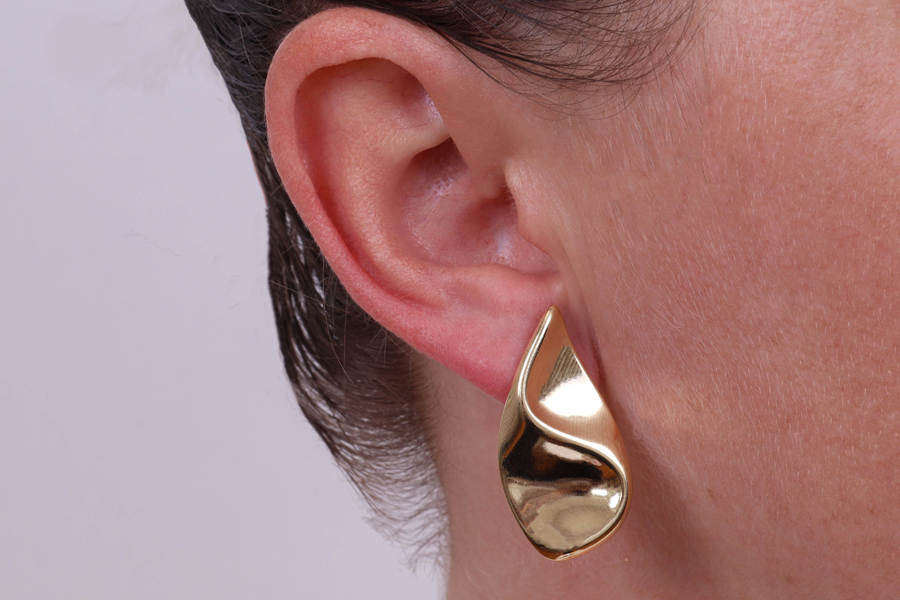 BRINCO BANHADO EM OURO, OVAL IRREGULAR 14mm COMPRIMENTO, LISO OU ACETINADO