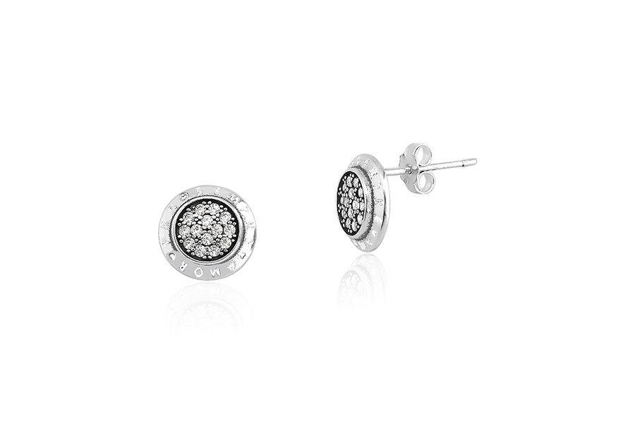 BRINCO EM PRATA, REDONDO 9mm DIÂMETRO, COM BANHO DE RÓDIO BRANCO, COLEÇÃO AURA