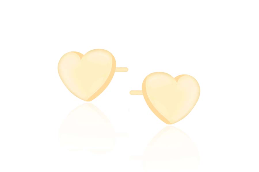 BRINCO BANHADO EM OURO, CORAÇÃO 3,50mm LARGURA COM TARRAXA BABY