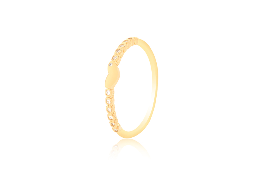 ANEL BANHADO EM OURO, COM ZIRCÔNIAS GOTA, 16mm LARGURA
