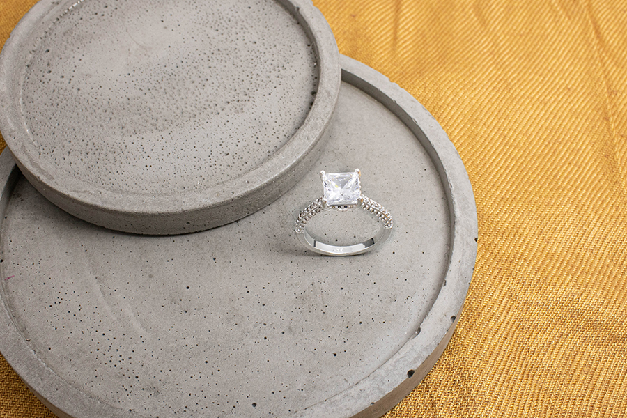 ANEL BANHADO EM RÓDIO BRANCO, SOLITÁRIO 9mm, LINHA TRADICIONAL