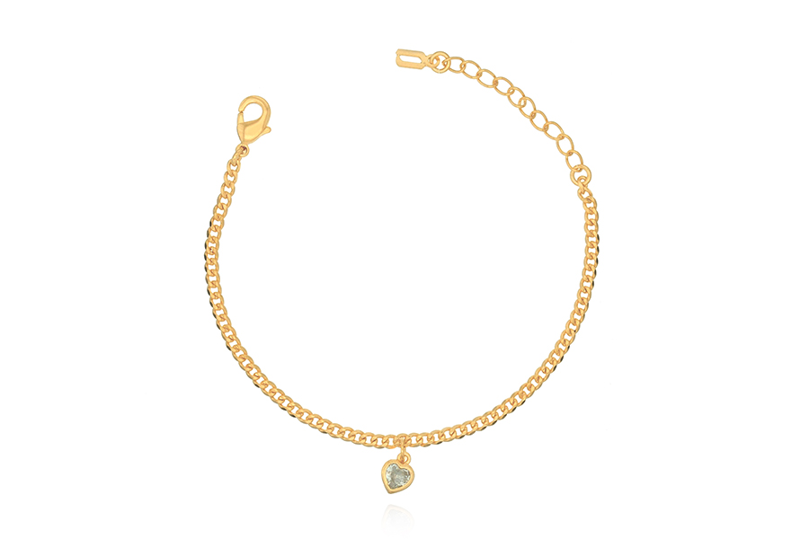 PULSEIRA BANHADA EM RÓDIO BRANCO, TRIPLA, 15cm COMPRIMENTO, EXTENSOR 5cm COMPRIMENTO E CORAÇÃO 14mm ALTURA