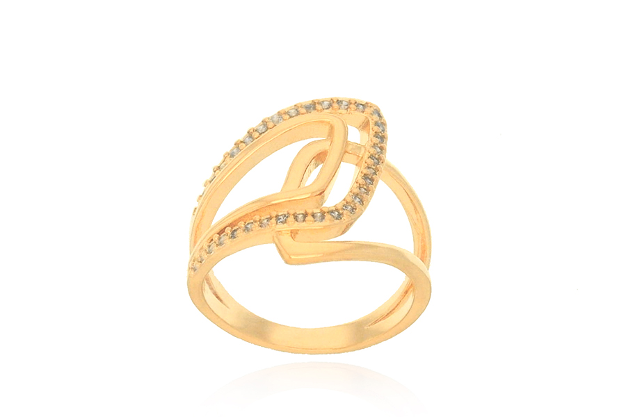 ANEL BANHADO EM OURO, COM ZIRCÔNIAS GOTA, 16mm LARGURA