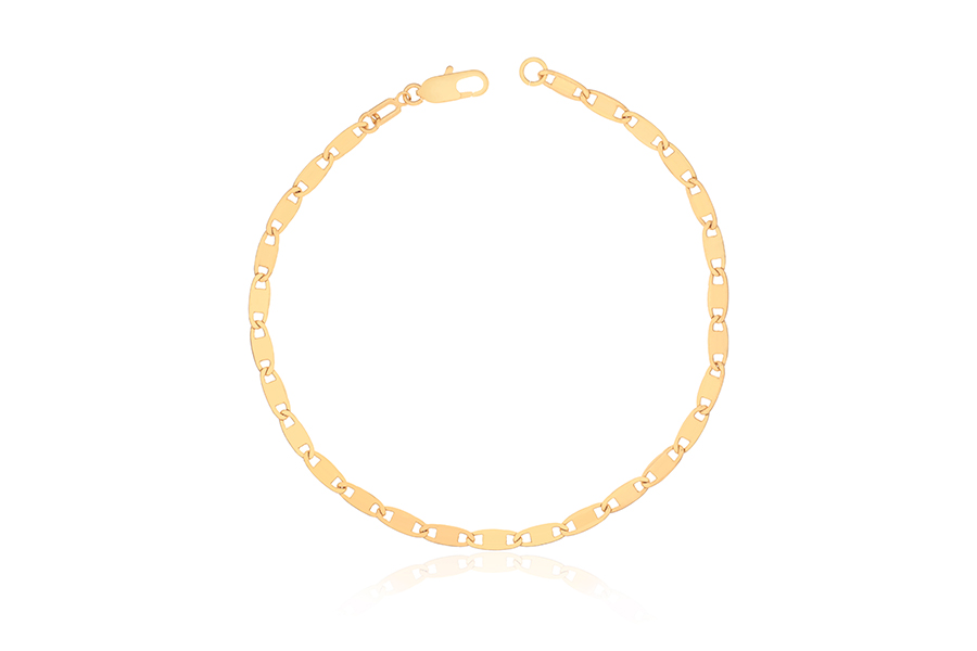 PULSEIRA INFANTIL BANHADA EM OURO, VENEZIANA LONGA 1,50mm ESPESSURA E CHAPINHA COM MENINO 24mm COMPRIMENTO
