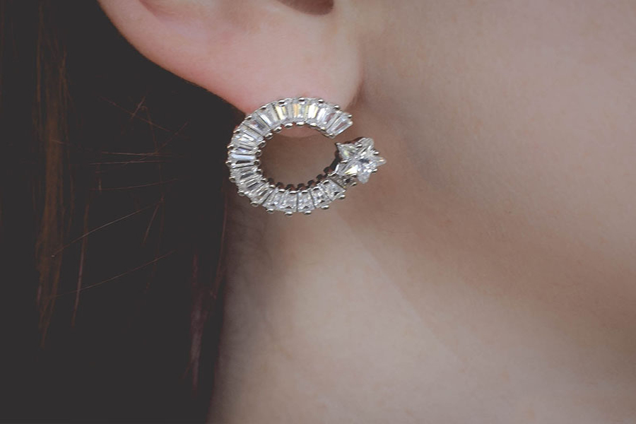 BRINCO EM PRATA, REDONDO 9mm DIÂMETRO, COM BANHO DE RÓDIO BRANCO, COLEÇÃO AURA